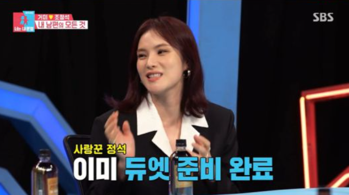 MC 서장훈은 "현재 전국투어를 성황리에 하고 계신다고 들었다. 조정석 씨가 거미 씨 공연에서 듀엣을 하고 싶다고 하던데 사실이냐"고 물었다. 김구라 역시 "남편도 노래 잘하지 않냐"며 거들었다.