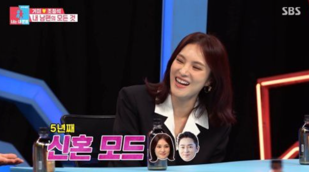 결혼 5년차 거미가 남편인 배우 조정석이 장모님과 자신의 뒷담화를 하다가 걸린 일화를 공개했다.