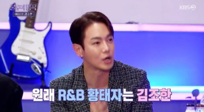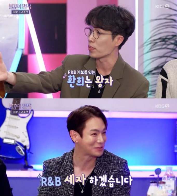 당황한 환희는 "내 얘기 좀 들어달라. 팬분들도 그렇고 제 음악을 좋아해주시는 분들은 저를 'R&B 황태자'라고 많이 해 주시는데 '원래 'R&B 황태자'는 김조한이다'라고 말했다"고 해명해 웃음을 자아냈다.