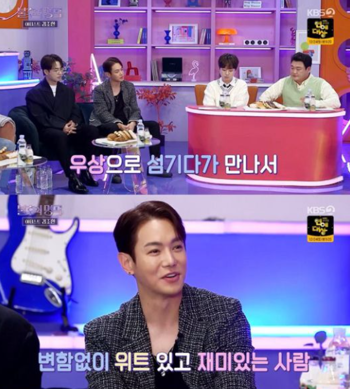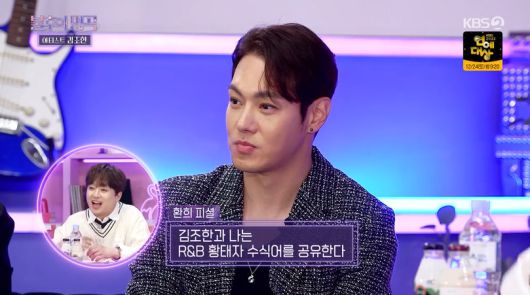 R&B 2세대 대표주자 환희는 "김조한 선배님과 콘서트를 같이 했다. 우상으로 섬기다가 만났다. 옆에서 기타 하나만 들고 노래를 부르시는 것만 봐도 저희한테는 배움이 된다"고 김조한을 향한 존경심을 드러냈다.