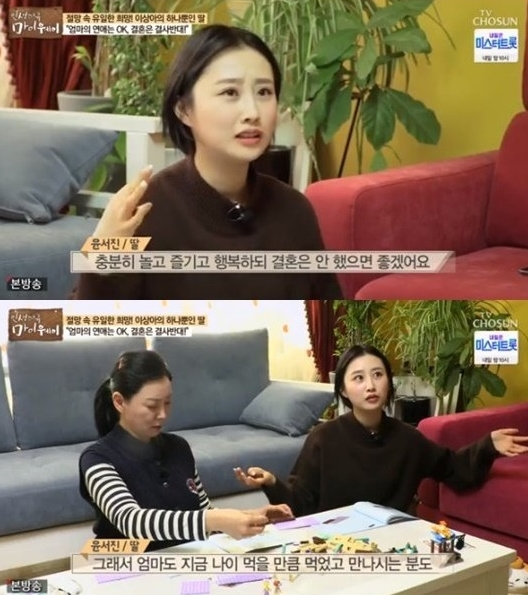TV CHOSUN '인생다큐 마이웨이'에 이상아와 그녀의 딸 윤서진이 출연하여 이상아의 연애와 결혼에 대해 이야기했다.
