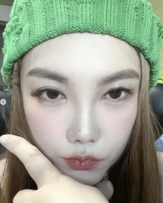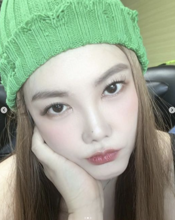 공개한 사진에는 초록색 비니를 쓰고 근접 셀카로 본인 얼굴을 자신감 있게 찍은 사진을 담고 있다.