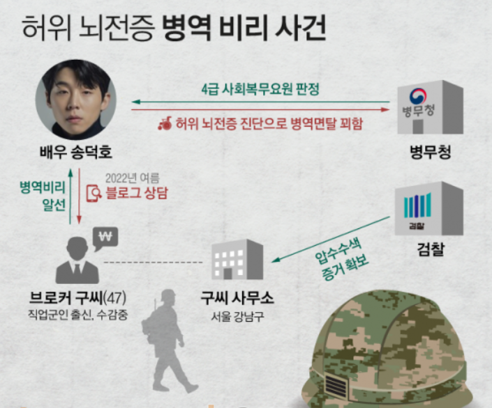 이후 송덕호는 A씨의 지시대로 뇌전증이 있는 것처럼 연기하고 진단을 받아서 병역을 면탈 받았다고 한다.