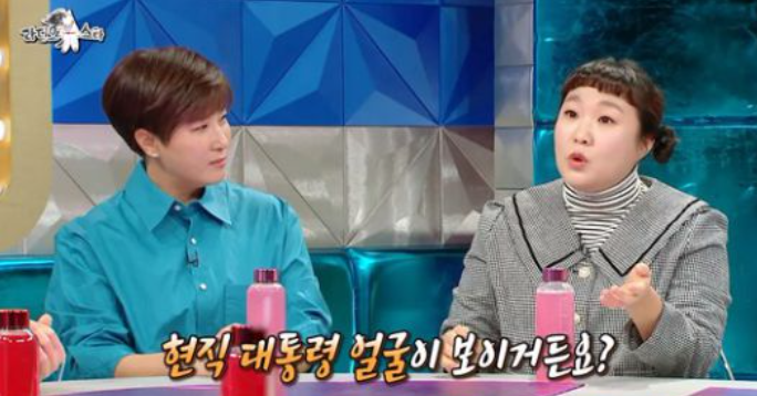 이수지는 "아들을 문득문득 볼 때마다 약간 현직 대통령님 얼굴이 보인다"고 말했다. 그러자 안영미는 이수지의 얼굴을 보더니 "있어"라고 외쳤고, 이수지는 앞머리를 넘기며 윤석열 대통령의 얼굴을 묘사해, MC들 또한 공감하며 크게 웃었다.
